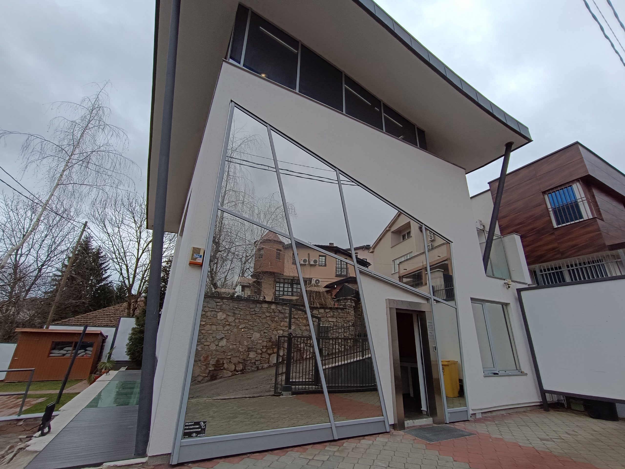Poslovni objekat ukupne kvadrature 438 m2, sa dvorištem 300 m2.Objekat je kancelarijskog tipa, posjeduje, suteren prizemlje, dva sprata. Dvorište uređeno sa zelenim površinama ,prostorom za sjedenje -ljetnja bašta i parkingom za 4-5 auta.