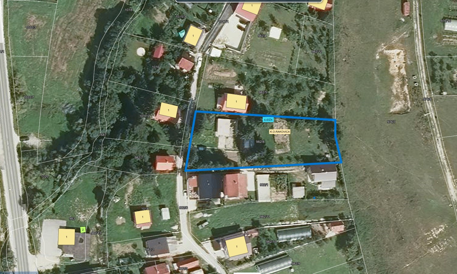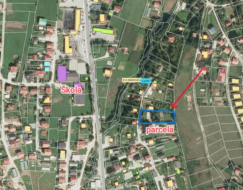 Lokacija se nalazi u centru Rakovice preko puta osnovne škole i džamije, a udaljenost od glavne ceste je 200 pristupnom cestom,a vazdušnom linijom svega 100 m.Zemljište je blaga zaravan i pruža niz mogućnosti za gradnju jedne ili dvije kuće, pomoćnih objekata ili više vikend objekata,ovisno od potreba i vizije budućeg vlasnika